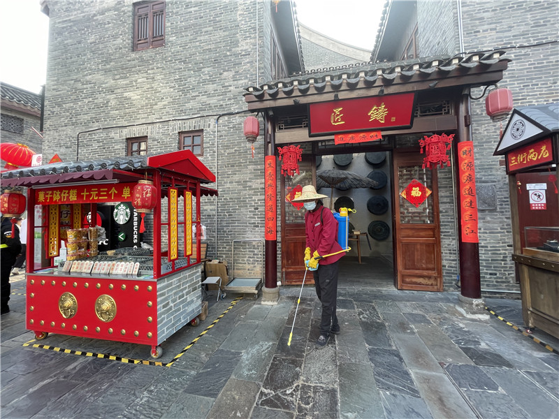 三街兩巷工作人員在進(jìn)行全面消殺工作