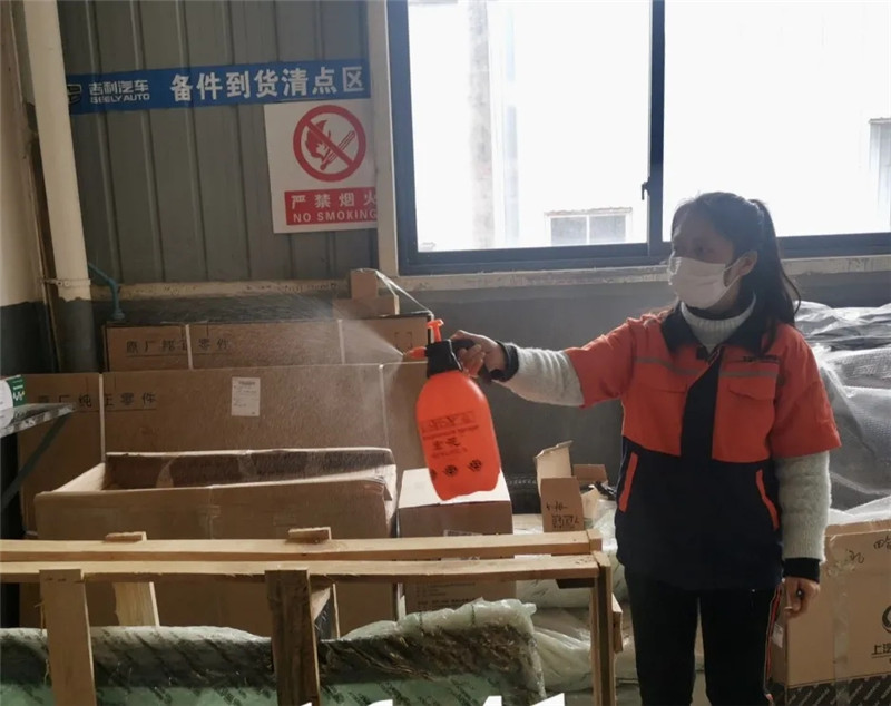 南寧百貨倉(cāng)管員對(duì)到貨物品先消毒再入庫(kù)