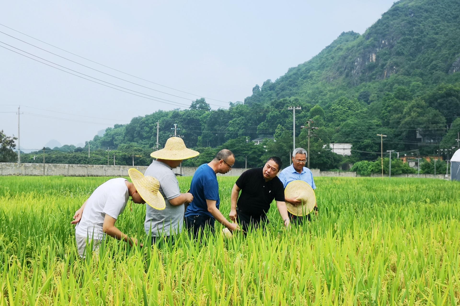 圖 在武鳴區(qū)伊嶺新品種示范展示基地了解優(yōu)質(zhì)稻新品種種植情況