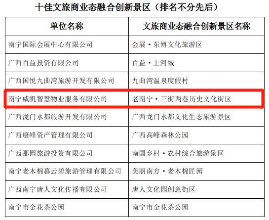 近日,由南寧市文化廣電和旅游局主辦、南寧市旅游協(xié)會承辦的2021年南寧市“十佳文旅項目(品牌)”評選活動落下帷幕。老南寧·三街兩巷歷史文化街區(qū)在此次評選中榮獲“十佳新型文化空間”“十佳文旅商業(yè)態(tài)融合創(chuàng)新景區(qū)”稱號。這是今年繼獲得“首批國家級旅游休閑街區(qū)”稱號后又一次斬獲殊榮。
