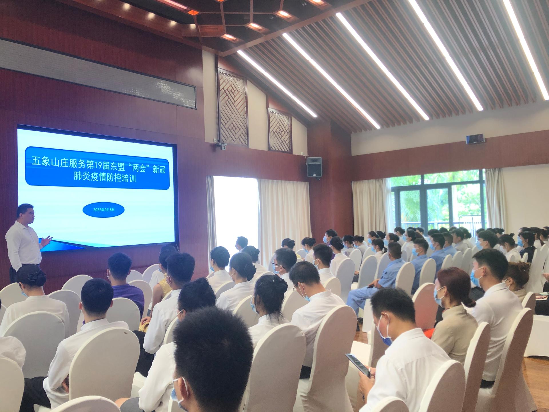 根據(jù)疫情防控政策,五象山莊明確會(huì)前、會(huì)議期間防疫要求,嚴(yán)格落實(shí)公共區(qū)域、酒店客房、餐具器皿消毒清潔工作,并組織全體員工開展疫情防控培訓(xùn)及應(yīng)急程序處置演練。東博會(huì)服務(wù)接待期間,細(xì)化防疫措施,實(shí)行全員核酸檢測(cè)“每日一檢”要求,對(duì)所有進(jìn)入酒店的人員一律嚴(yán)查72小時(shí)核酸陰性碼及健康碼、行程碼和測(cè)量體溫等,并為到店賓客提供口罩、免洗消毒液等防疫物資,確保貴賓順利參會(huì)。