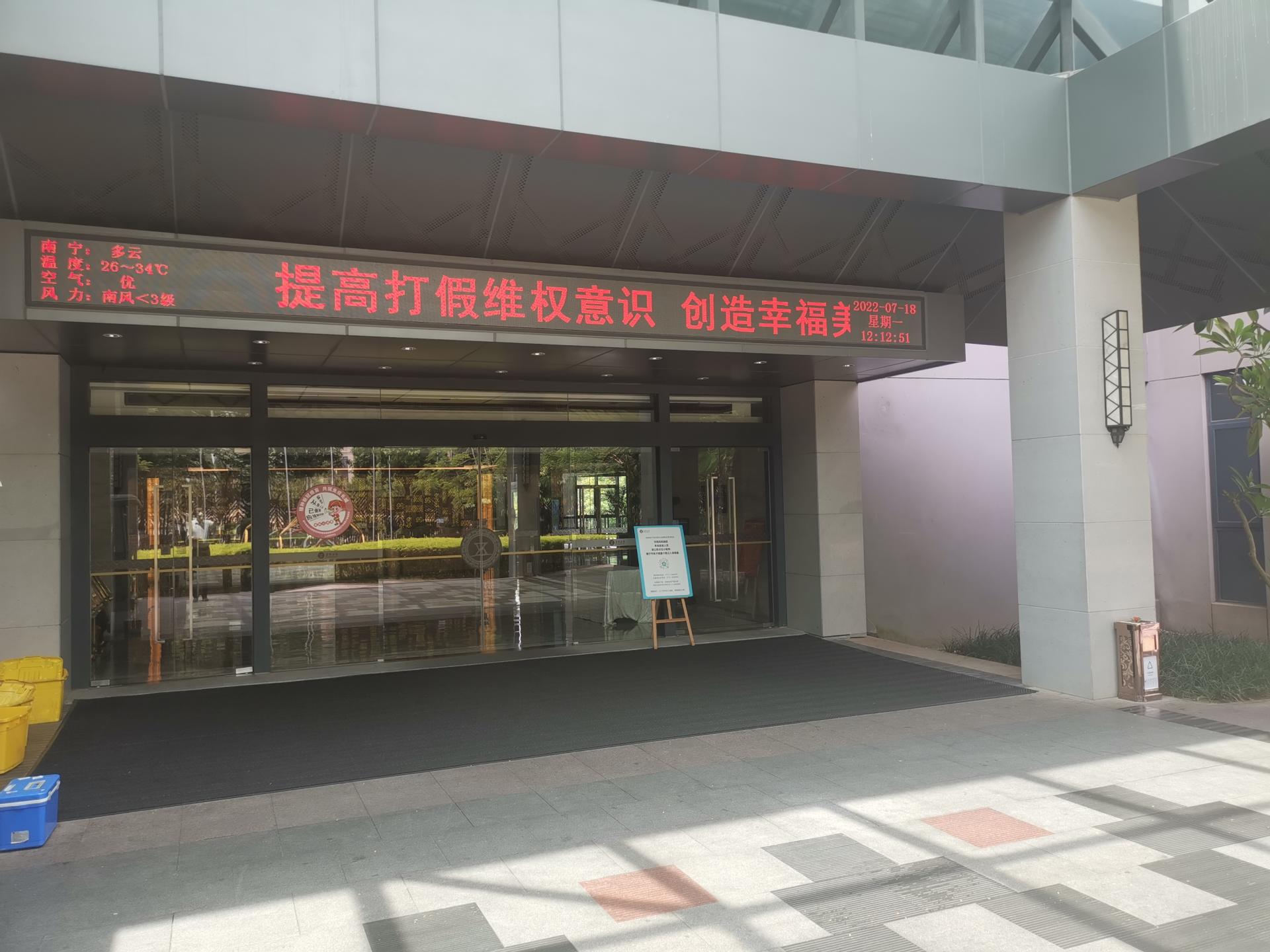 如南寧大地飛歌集團、民族影城、五象山莊、銀河大酒店等利用餐飲服務行業(yè)人流量大、受眾多、范圍廣的宣傳優(yōu)勢,通過宣傳板報、LED屏滾動播放“加強知識產(chǎn)權(quán)保護,營造良好營商環(huán)境”“尊重知識、崇尚創(chuàng)新、誠實守法、公平競爭”等宣傳標語。