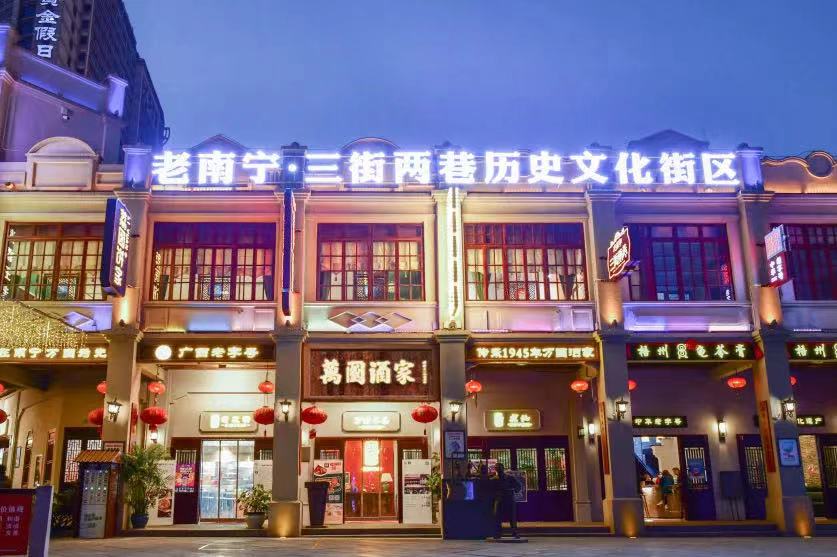 威邕城市運(yùn)營(yíng)開展頭腦風(fēng)暴,創(chuàng)新策劃舉辦活動(dòng)?!傍櫢ER門邕城盛市”三街兩巷二期新街開放暨倉(cāng)西門揭幕儀式系列活動(dòng)、三街兩巷新春嘉年華沉浸式國(guó)風(fēng)系列活動(dòng)、二期開街活動(dòng)暨首屆國(guó)風(fēng)文化節(jié)等大型主題活動(dòng)共計(jì)10余次,得到中央廣播電視總臺(tái)、廣西日?qǐng)?bào)、廣西電視臺(tái)、南寧市主流媒體等廣泛報(bào)道,獲得社會(huì)各界與廣大游客的廣泛關(guān)注。國(guó)慶期間,“三街兩巷首屆國(guó)風(fēng)文化節(jié)”活動(dòng),游客接待量超70萬人次,同比2021年國(guó)慶假期增長(zhǎng)40%,營(yíng)業(yè)額超5000萬元,同比2021年國(guó)慶假期增長(zhǎng)317%。主題活動(dòng)的成功舉辦,促進(jìn)了街區(qū)人流量、消費(fèi)量“雙量”提升,極大的提升了商戶的經(jīng)營(yíng)信心,促進(jìn)了招商工作的推進(jìn)。(圖5.三街兩巷2022年國(guó)慶活動(dòng))