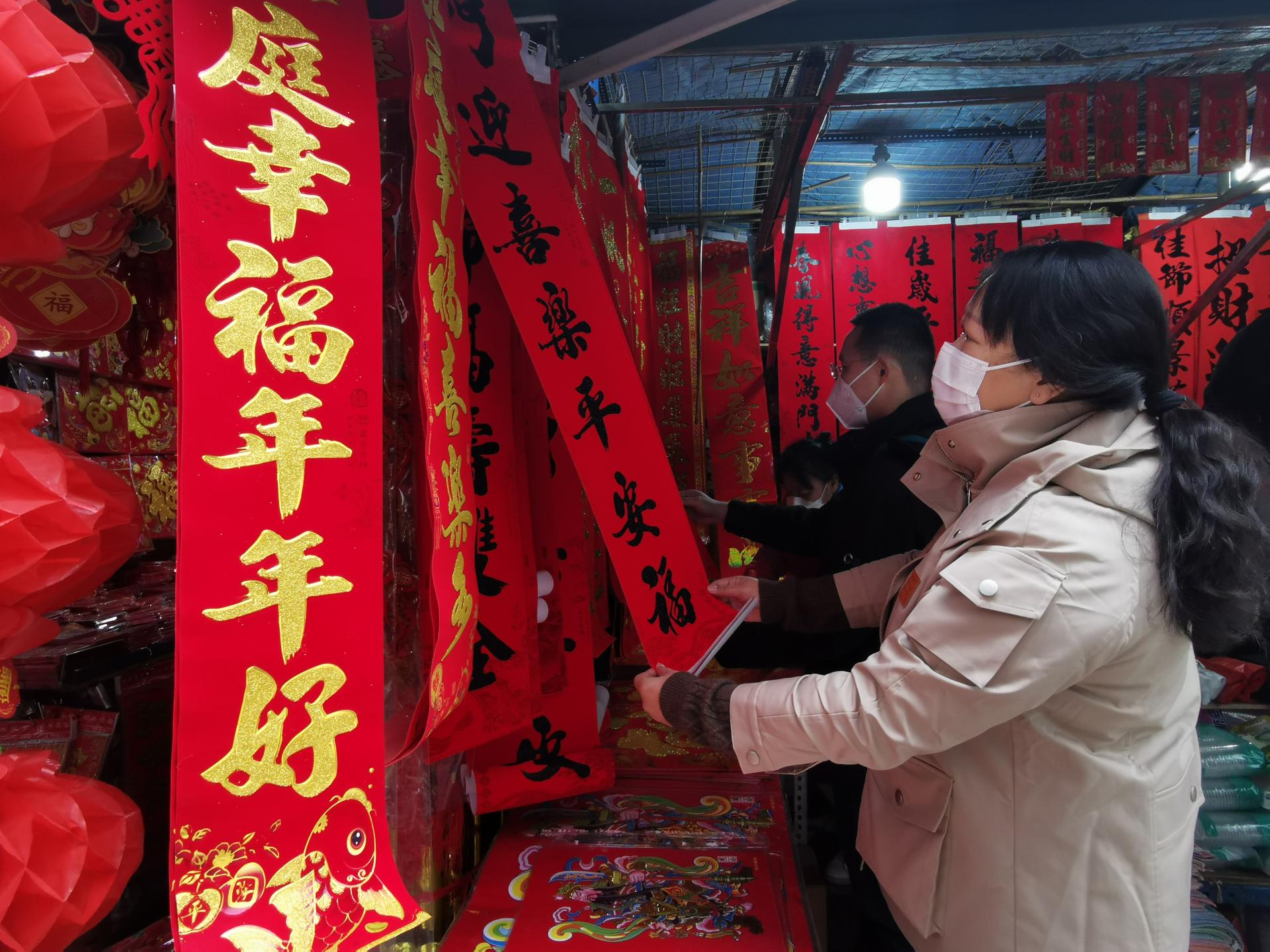 市民在南寧交易場(chǎng)選購(gòu)新春對(duì)聯(lián)