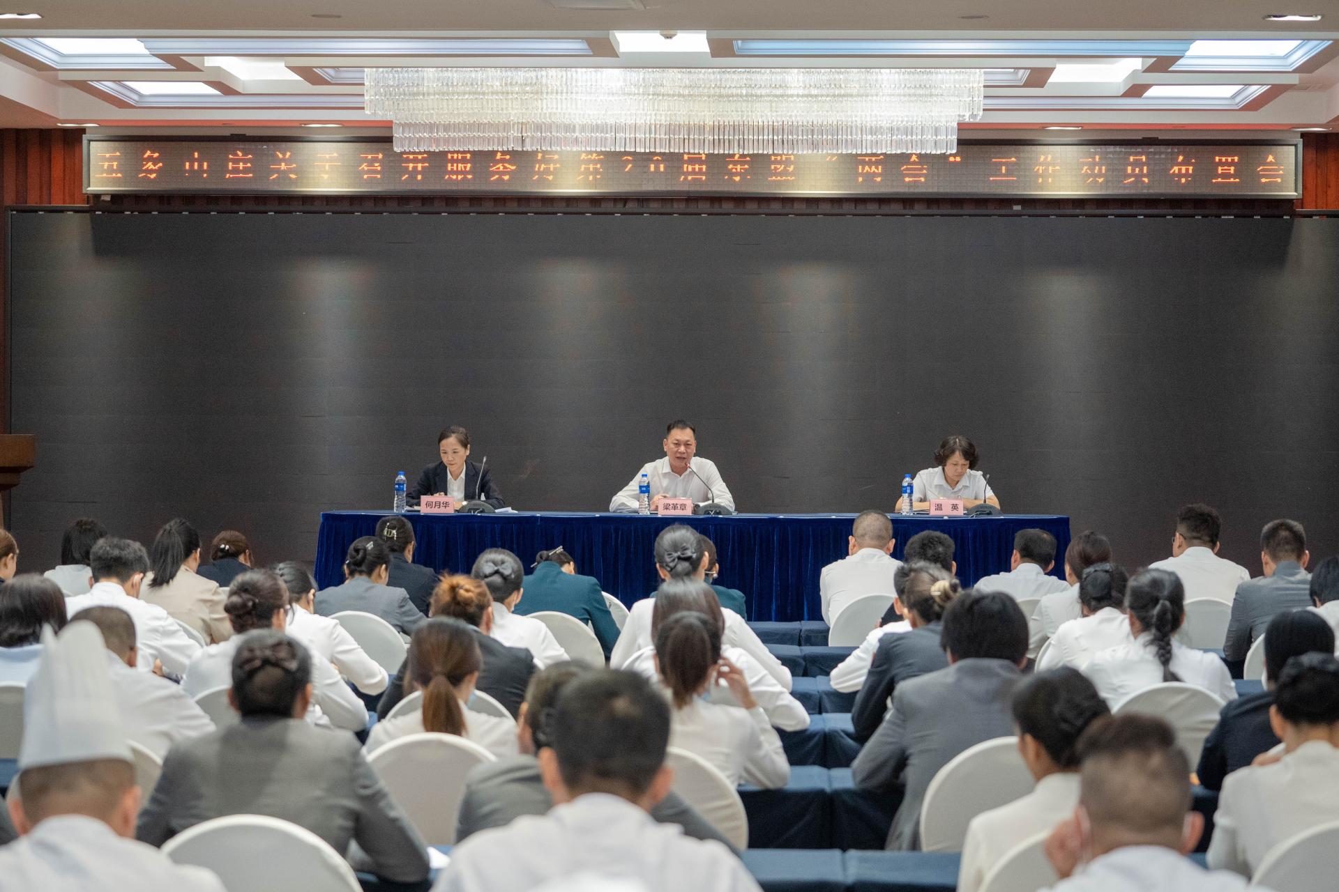 接到大會(huì)接待任務(wù)后,五象山莊第一時(shí)間組織各部門負(fù)責(zé)人召開內(nèi)部會(huì)議,制定詳細(xì)的接待計(jì)劃,落實(shí)板塊分工,明確工作職責(zé)及接待流程,扎實(shí)細(xì)致地做好各項(xiàng)保障工作,確保接待任務(wù)萬無一失。接待前夕,酒店召開了專題員工動(dòng)員大會(huì),會(huì)議要求全體員工以“合心、合力、和氣”的精神面貌,為賓客營造一個(gè)舒適滿意的參會(huì)環(huán)境,多方面展示酒店在接待大型國際會(huì)議中高標(biāo)準(zhǔn)、高要求、高質(zhì)量的服務(wù)水平。