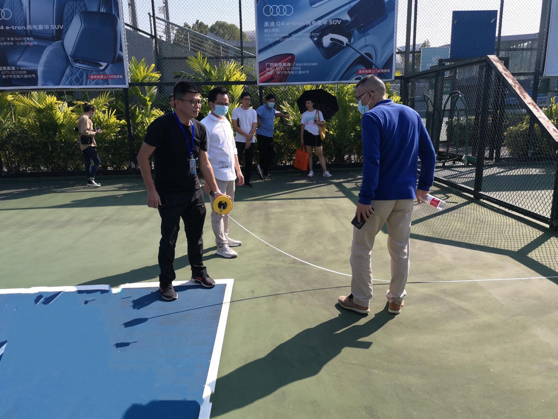國家體育總局專家、自治區(qū)及南寧市執(zhí)委會相關(guān)職能部門人員到廣西體育中心考察網(wǎng)球中心場地及設(shè)施設(shè)備情況