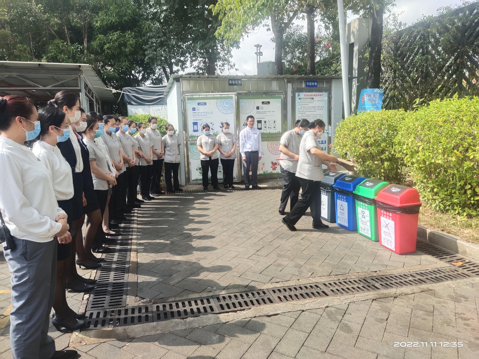 為進(jìn)一步提高全體員工垃圾分類意識和技能,加強酒店垃圾分類管理,11月11日中午,威寧酒店公司所屬五象山莊公司組織餐飲部、房務(wù)部全體員工開展垃圾分類知識學(xué)習(xí)培訓(xùn)活動,共有40人參加培訓(xùn)。本次培訓(xùn)分為理論學(xué)習(xí)和現(xiàn)場實踐教學(xué)兩個環(huán)節(jié)。首先集中到辦公室學(xué)習(xí)垃圾分類有關(guān)的文件制度精神,進(jìn)一步認(rèn)識到垃圾分類工作的重要性,夯實理論基礎(chǔ)。在現(xiàn)場教學(xué)環(huán)節(jié),全體人員分別集中在18號樓垃圾...