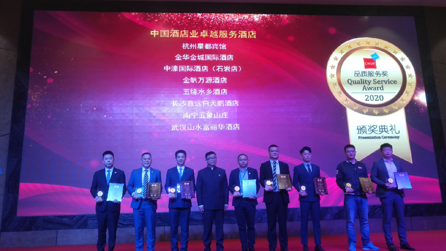 2020年10月30日,五象山莊總經(jīng)理梁革章應(yīng)邀出席在長沙舉辦的以“品質(zhì)與品牌:服務(wù)創(chuàng)新賦能高質(zhì)量發(fā)展”為主題,第四屆中國酒店服務(wù)創(chuàng)新論壇暨2020中國酒店業(yè)品質(zhì)服務(wù)獎(jiǎng)?lì)C獎(jiǎng)典禮。五象山莊憑借其得天獨(dú)厚的自然環(huán)境、卓越的軟硬件設(shè)施、優(yōu)質(zhì)暖心的賓客服務(wù)以及良好的市場口碑,在激烈的評(píng)選角逐中得到組委會(huì)一致認(rèn)可,摘得2020中國酒店業(yè)品質(zhì)服務(wù)獎(jiǎng)『中國酒店業(yè)卓越服務(wù)酒店』殊榮。