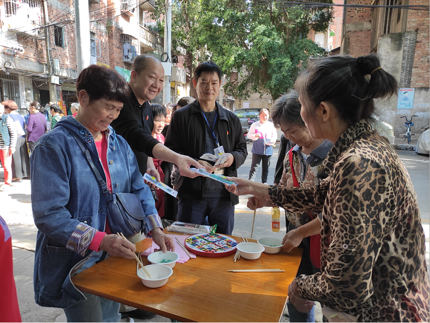 活動(dòng)現(xiàn)場秋風(fēng)送爽,情暖重陽。2020年10月23日,威寧市場公司商業(yè)事業(yè)部黨總支聯(lián)合永寧社區(qū)黨總支開展“孝老愛親,溫情重陽”主題活動(dòng),為社區(qū)退休老同志送上最真摯的節(jié)日祝福?;顒?dòng)現(xiàn)場,來自威寧市場公司和永寧社區(qū)的黨員志愿者們?yōu)樯鐓^(qū)退休老同志們精心準(zhǔn)備了趣味橫生的游園活動(dòng)。拋圈、接乒乓球、夾玻珠……老少咸宜的小游戲輪番進(jìn)行,現(xiàn)場掌聲、喝彩聲此起彼伏。同時(shí),在游園小游戲中穿插的全國文明城市創(chuàng)建、垃圾分類