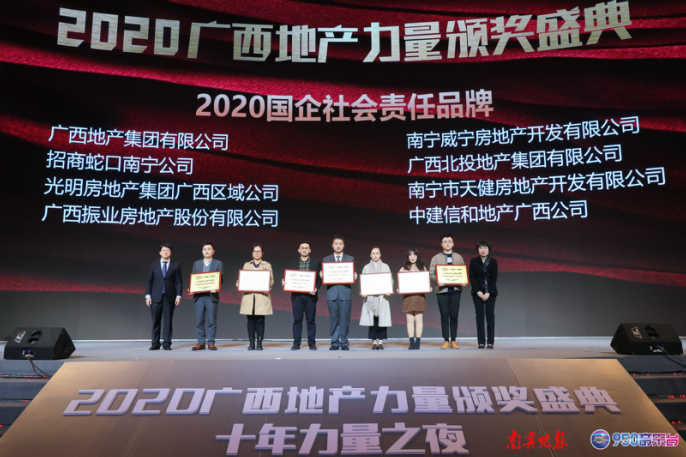 近日,威寧房地產(chǎn)公司在由南寧晚報和廣西廣播電視臺FM950聯(lián)合主辦、南寧市房地產(chǎn)業(yè)協(xié)會協(xié)辦的2020廣西地產(chǎn)力量頒獎盛典上連獲“2020國企社會責(zé)任品牌”、“2020廣西地產(chǎn)匠心代表作(威寧青運村)”、“2020廣西商業(yè)綜合體美好城市服務(wù)標(biāo)桿(威寧鄰家廣場)”等多個獎項,收獲了滿滿的榮譽。