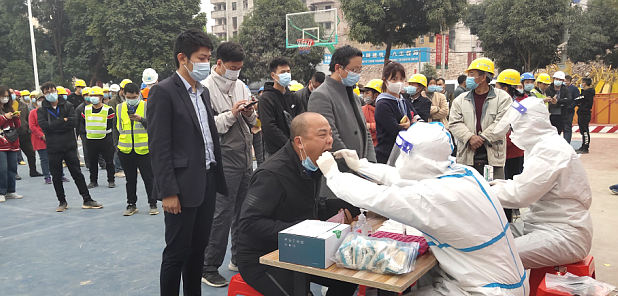 1月16日,威寧房地產(chǎn)公司所監(jiān)管的興威公司在建項目南寧市“三街兩巷”項目金獅巷銀獅巷保護整治改造(二期)現(xiàn)場組織項目全體人員進行核酸檢測,僅用2.5個小時就完成了全部人員的檢查,檢測結(jié)果全部為陰性。