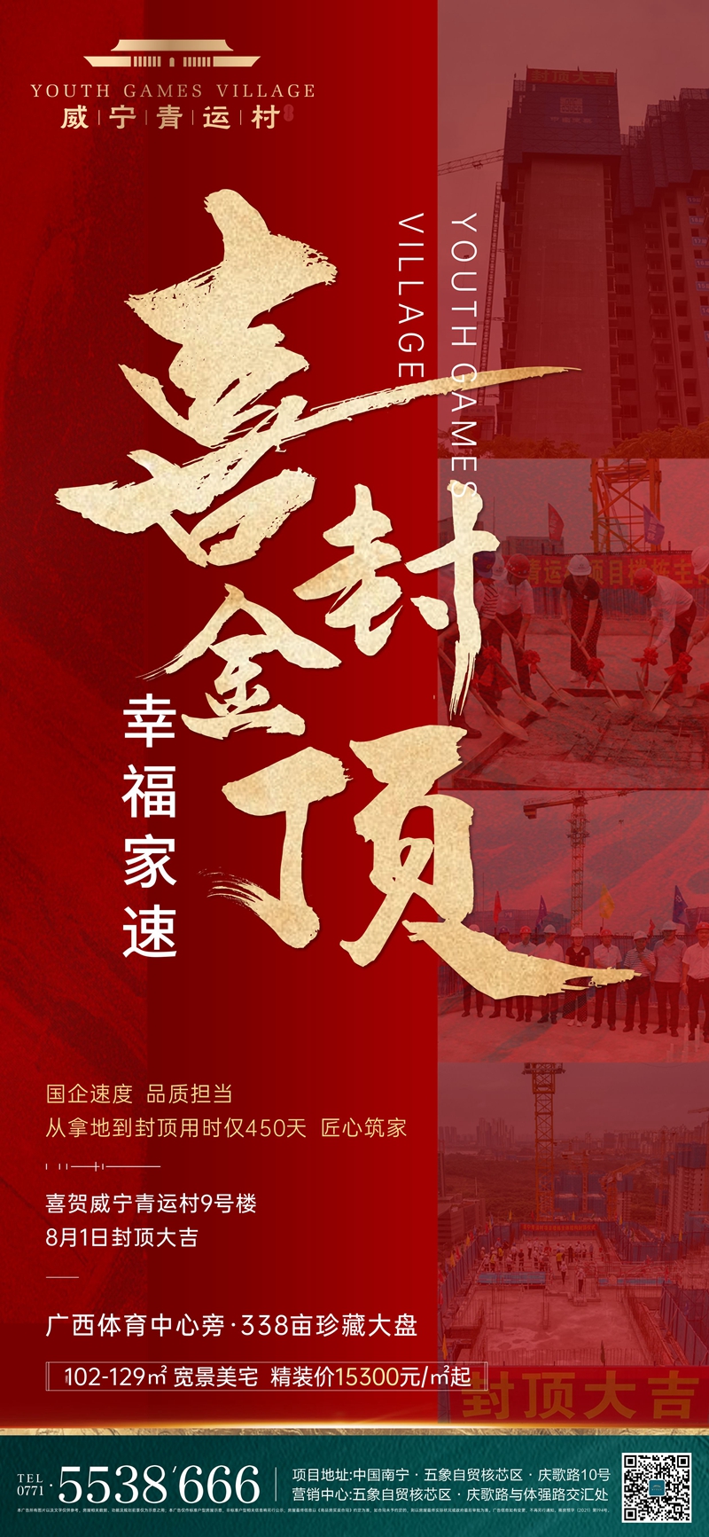 8月1日上午,隨著最后一方混凝土填入,威寧青運(yùn)村9號(hào)樓主體正式封頂,這是項(xiàng)目自拿地以來實(shí)現(xiàn)的首個(gè)樓棟封頂。