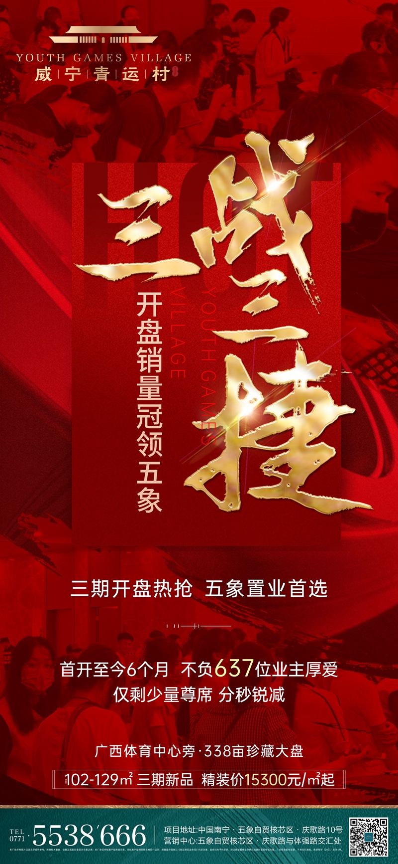 7月25日,威寧青運(yùn)村三期新品開盤熱搶,緊隨一、二期銷售熱勢,三戰(zhàn)三捷,首開至今6個(gè)月,不負(fù)637位業(yè)主的厚愛,實(shí)錘“五象紅盤”!